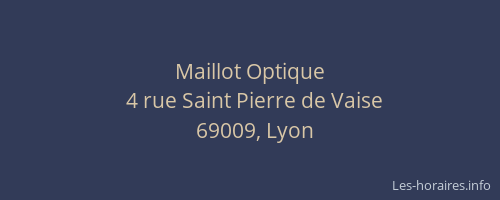Voici les horaires de Maillot Optique situé à Lyon 9ème,