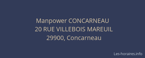 Voici les horaires de Manpower CONCARNEAU situé à Concarneau,