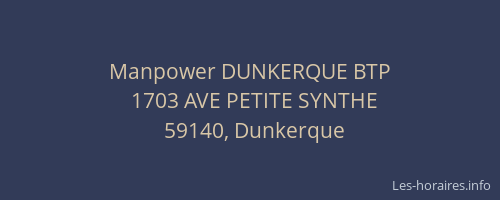 Voici les horaires de Manpower DUNKERQUE BTP situé à Dunkerque,