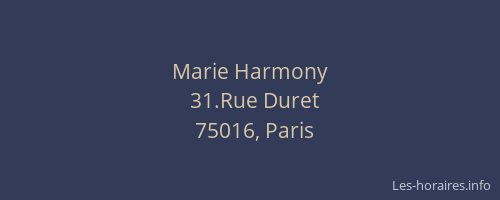 Voici les horaires de Marie Harmony situé à Paris 16ème,