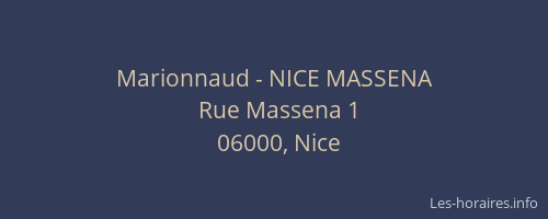 Voici les horaires de Marionnaud - NICE MASSENA situé à Nice,