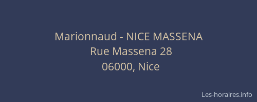 Voici les horaires de Marionnaud - NICE MASSENA situé à Nice,