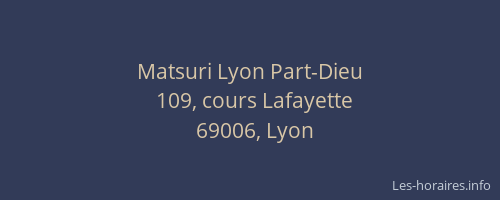 Voici les horaires de Matsuri Part-Dieu situé à Lyon,