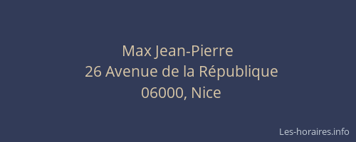 Voici les horaires de Max Jean-Pierre situé à Nice,