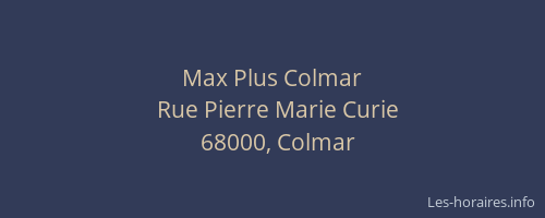 Max Plus Colmar est il ouvert aujourd'hui ?