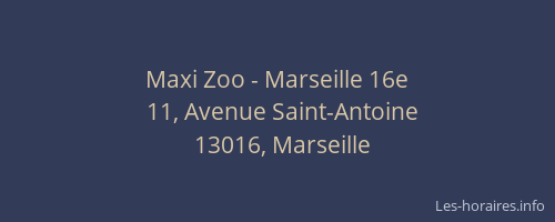 Voici les horaires de Maxi Zoo - 16e situé à Marseille,