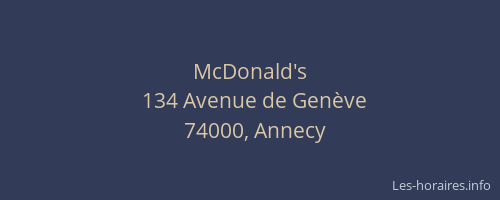 Voici les horaires de McDonald's situé à Annecy,