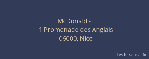 Voici les horaires de McDonald's situé à Nice,