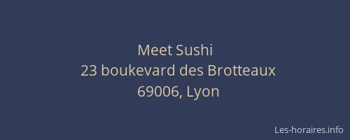 Voici les horaires de Meet Sushi situé à Lyon 6ème,