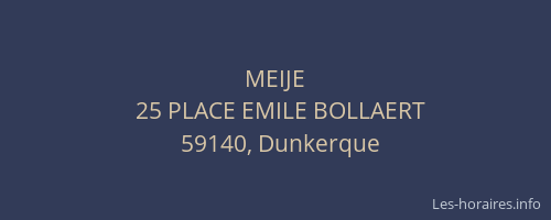 Vous pouvez renseigner les horaires MEIJE situé à Dunkerque,