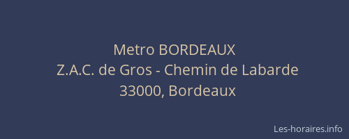 Voici les horaires de Metro BORDEAUX situé à Bordeaux,