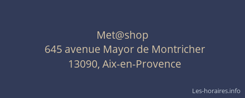 Voici les horaires de Met@shop situé à Aix-en-Provence,