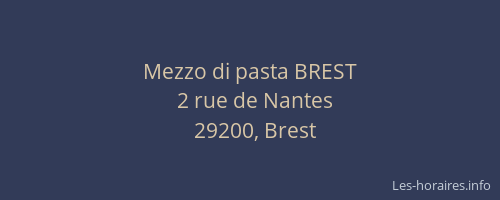 Voici les horaires de Mezzo di pasta BREST situé à Brest,