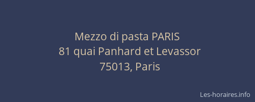 Voici les horaires de Mezzo di pasta PARIS situé à Paris 13ème,