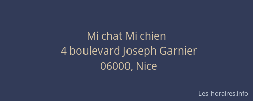 Voici les horaires de Mi chat Mi chien situé à Nice,