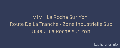 Voici les horaires de MIM - La Roche Sur Yon situé à La Roche-sur-Yon,