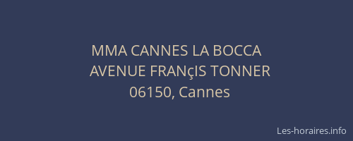 Voici les horaires de MMA CANNES LA BOCCA situé à Cannes,
