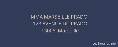 Voici les horaires de MMA MARSEILLE PRADO situé à Marseille,