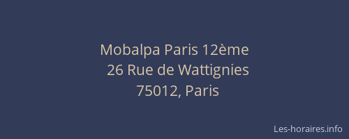 Voici les horaires de Mobalpa 12ème situé à Paris,
