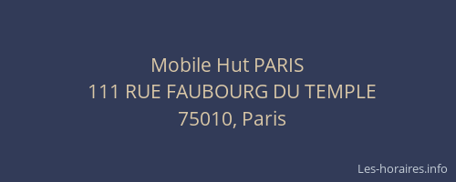 Voici les horaires de Mobile Hut PARIS situé à Paris 10ème,