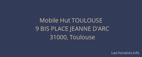 Voici les horaires de Mobile Hut TOULOUSE situé à Toulouse,