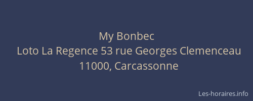 Voici les horaires de My Bonbec situé à Carcassonne,