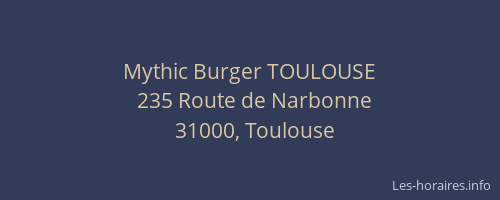 Voici les horaires de Mythic Burger TOULOUSE situé à Toulouse,