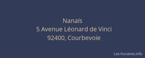 Voici les horaires de Nanaïs situé à Courbevoie,