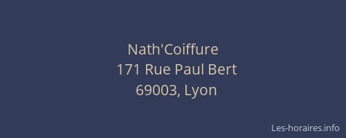 Voici les horaires de Nath'Coiffure situé à Lyon 3ème,