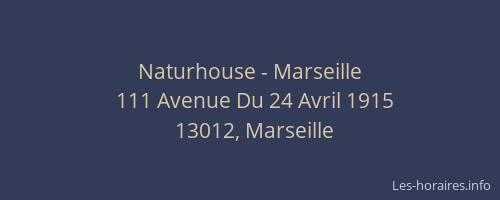 Voici les horaires de Naturhouse - situé à Marseille 12ème,
