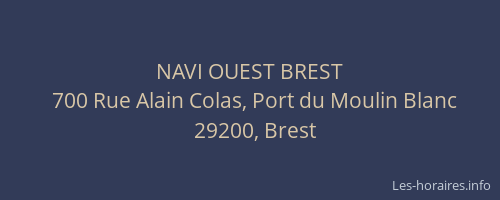 Voici les horaires de NAVI OUEST BREST situé à Brest,