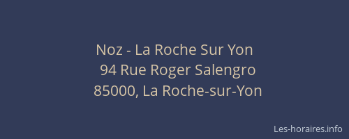 Voici les horaires de Noz - La Roche Sur Yon situé à La Roche-sur-Yon,