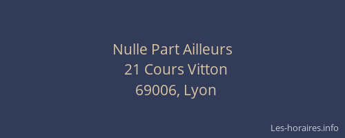Voici les horaires de Nulle Part Ailleurs situé à Lyon 6ème,