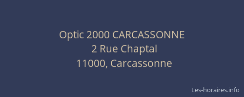 Voici les horaires de Optic 2000 CARCASSONNE situé à Carcassonne,