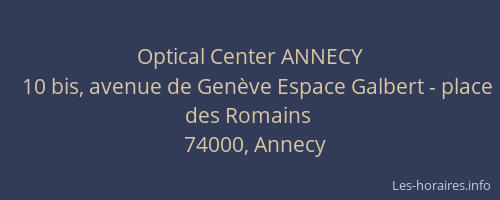 Voici les horaires de Optical Center ANNECY situé à Annecy,