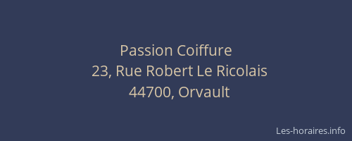 Voici les horaires de Passion Coiffure situé à Orvault,