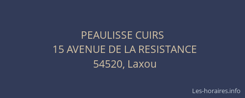Voici les horaires de PEAULISSE CUIRS situé à Laxou,