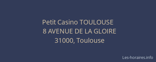 Voici les horaires de Petit Casino TOULOUSE situé à Toulouse,