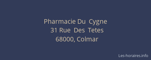 Voici les horaires de Pharmacie Du Cygne situé à Colmar,