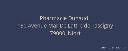 Voici les horaires de Pharmacie Duhaud situé à Niort,