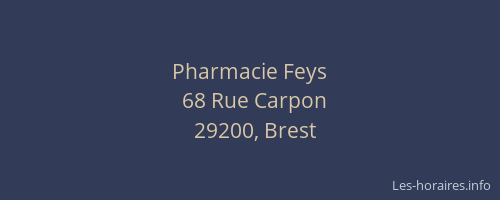 Voici les horaires de Pharmacie Feys situé à Brest,