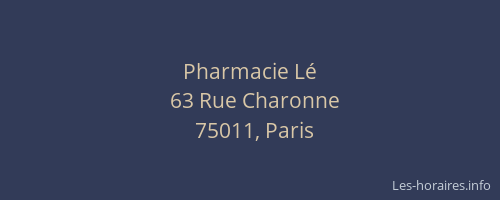Voici les horaires de Pharmacie Lé situé à Paris 11ème,