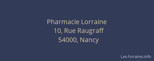 Voici les horaires de Pharmacie Lorraine situé à Nancy,