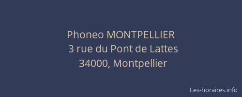 Voici les horaires de Phoneo MONTPELLIER situé à Montpellier,