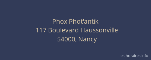 Voici les horaires de Phox Phot'antik situé à Nancy,