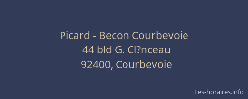Voici les horaires de Picard - Becon situé à Courbevoie,