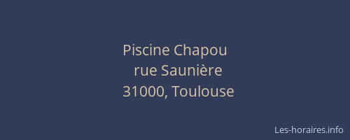 Voici les horaires de Piscine Chapou situé à Toulouse,
