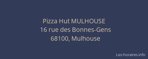Voici les horaires de Pizza Hut MULHOUSE situé à Mulhouse,