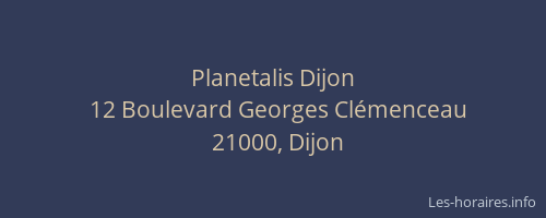 Voici les horaires de Planetalis situé à Dijon,