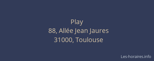 Voici les horaires de Play situé à Toulouse,